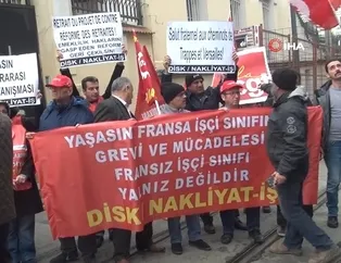 Fransa'da yeni emeklilik yasası reformu hayatı felç etmeye ve hükümeti sarsmaya devam ederken, çeşitli sendikalar da duruma tepki göstermeyi sürdürüyor. Nakliyat-İş Sendikası Genel Başkanı Ali Rıza Küçükosmanoğlu ve beraberindeki sendika üyeleri, Fransa İstanbul Başkonsolosluğu önüne gelerek, Fransa'daki emeklilik reformunu protesto amacıyla basın açıklaması düzenledi.