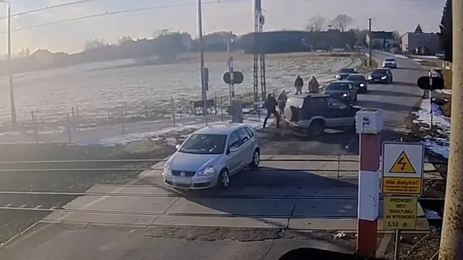 Otomobili hemzemin geçitte kalan sürücü çarpışmaya saniyeler kala yardıma gelen başka bir sürücü tarafından kurtarıldı. A HABER UYGULAMASINI İNDİRMEK İÇİN TIKLAYIN