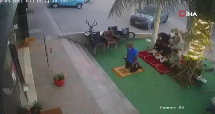 Suudi Arabistan’da hızını alamayan bir otomobil, dükkanının önünde namaz kılan bir grup kişinin arasına daldı. Büyük korkuya neden olan olayda can kaybı yaşanmadı. Dehşete düşüren anlar güvenlik kameralarına saniye saniye böyle yansıdı.