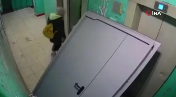 Rusya'da asansör bekleyen genç bir kız, duvara yaslanan çelik kapıyı merak edip çekince kapı üstüne devrildi. Yürekleri hoplatan anlar güvenlik kamerasına böyle yansıdı...