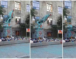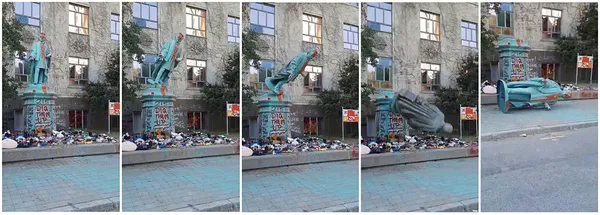 Üniversite tarafından yapılan açıklamada, dün öğleden sonra düzenlenen gösteriye binden fazla kişinin katıldığı ifade edilerek, heykelin kamyon yardımı ile yıkıldığı aktarıldı.
