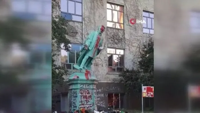 SON DAKİKA | 215 çocuğun cesedi Kanada’yı karıştırdı! Egerton Ryerson’ın heykeli böyle yıkıldı