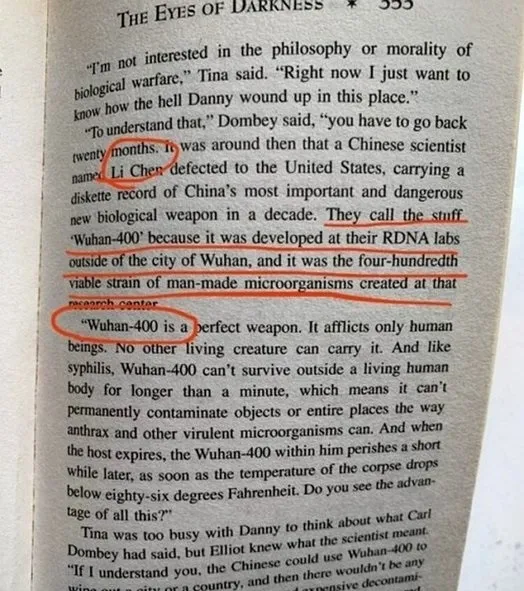 Amerikalı yazar Dean Koontz'un imzasını taşıyan 1981 tarihli gerilim türündeki "Karanlığın Gözleri" romanında "Wuhan-400" adı verilen bir hastalık olduğu ortaya çıktı.