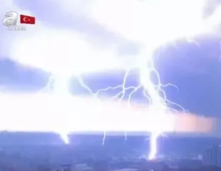 Yerleşim yerlerinin bulunduğu bölgeye düşen yıldırım böyle görüntülendi.