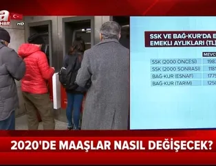 Peki 2020'de maaşlar nasıl değişecek? 2020 yılı için; "En düşük memur maaşı ne kadar olacak? En yüksek memur maaşı ne kadar olacak? SSK ve Bağ-Kur'da emekli aylıklarına ne kadar zam olacak? En düşük emekli maaşı ne kadar olacak? En yüksek emekli maaşı ne kadar olacak? En düşük emekli memur aylığı ne kadar olacak? En yüksek emekli memur aylığı ne kadar olacak?" milyonlarca vatandaşın internette merakla yanıt aradığı bu sorular cevap A Haber canlı yayınında geldi. Detaylar haberimizde...