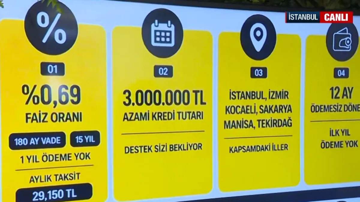 Kentsel dönüşüm sürecini hızlandırmak ve riskli yapı stoğunu eritmek amacıyla yeni finansman paketleri resmen devreye alındı. "Yarısı Bizden" kampanyasının ardından açıklanan yeni kredi paketiyle, vatandaşlara 3 milyon TL’ye kadar limit ve %0,69 faiz oranıyla evlerini yenileme imkânı sunuluyor. İlk yıl ödemesiz, 15 yıla varan vade seçeneklerinin yer aldığı projede; dar gelirli, emekli ve şehit yakınları gibi gruplara özel ek faiz indirimleri de uygulanacak. Gayrimenkul Uzmanı Olcay Selvi, A Haber ekranlarında Merve İzci Özmen’in konuğu olarak yeni sistemin tüm detaylarını ve başvuru şartlarını değerlendirdi.