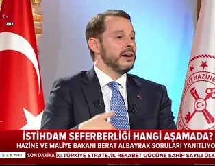 Hazine ve Maliye Bakanı Berat Albayrak A Haber- A Para ortak yayınında istihdam seferberliği ile ilgili önemli açıklamalarda bulundu. Albayrak, "Ocak ayında TOBB'da Yüksek Şura toplantısı yaptık. TOBB bize kalem kalem hangi destekler sağlanırsa biz de inisiyatif alırız dediler. Biz de teşviklerden, adımlardan bahsettik. Bu taleplerin tamamı karşılanırsa biz de taşın altına elimizi koyarız. Karşılıklı müzakere. Bunların hayatın geçmesine dayalı 81 ilde taahhütte bulundular. Bu dediğimiz husus TOBB'da 81 ilin tek tek verdiği il bazında taahhütler gerçekleşirse 2,5 milyona tekabül etti. Bunu takip ediyoruz. Mart ayında ciddi artış var.."