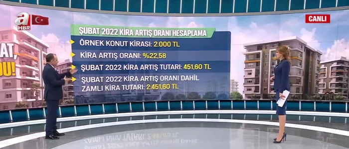 Son dakika haberi... Ocak ayı TÜFE oranlarına göre kira artış oranı belli oldu. Şubat 2022'de kira artış oranı yüzde 22,58'i geçemeyecek. Takvim Gazetesi Ekonomi Müdürü Faruk Erdem, detayları A Haber canlı yayınında anlattı.