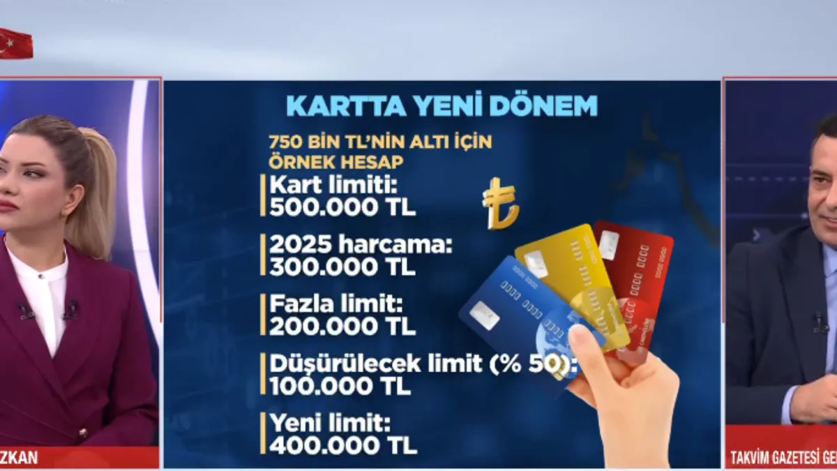 Milyonlarca kredi kartı kullanıcısını ilgilendiren yeni dönem resmen başladı. Bankacılık Düzenleme ve Denetleme Kurumu’nun bankalara tanıdığı süre dolarken, kredi kartı limitleri bugünden itibaren yeniden belirleniyor. 400 bin TL’nin üzerindeki limitler kademeli olarak düşürülecek. 750 bin TL’nin altındaki kartlarda fazla limitin yüzde 50’si, 750 bin TL’nin üzerindekilerde ise yüzde 80’i indirilecek. Yeni düzenlemenin detaylarını Takvim Gazetesi Genel Yayın Yönetmeni Faruk Erdem A Haber ekranlarında değerlendirdi.