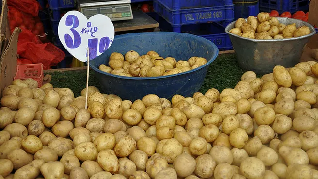 Kilogram fiyatı 6 liraya kadar çıkan patates fiyatları düşüşe geçti. Pazarlarda kilosu 4 liraya kadar düşen patates fiyatlarında düşüşün devam edeceğini ifade edildi. Önümüzdeki haftalarda patates ve soğanın kilogram fiyatları 2-2,5 liralara kadar gerileyecek.