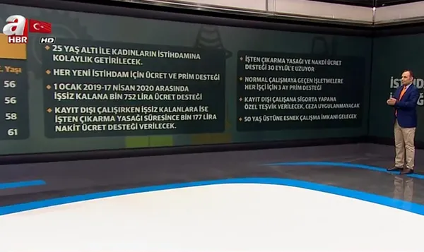 Hazine ve Maliye Bakanı Berat Albayrak'ın açıkladığı "Ekonomiye istihdam kalkanı" paketi işsizliğe çare olacak. Peki detaylar neler? Tamamlayıcı emeklilik nedir? Kimler yararlanacak? Piyasalara verilen 10 yıl vadeli krediden kimler faydalanabilecek? Sosyal destekler neler? Takvim Gazetesi ekonomi müdürü Faruk Erdem, A Haber canlı yayınında bu konularla ilgili detayları anlattı.