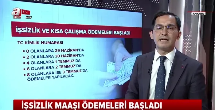 Aile, Çalışma ve Sosyal Hizmetler Bakanı Zehra Zümrüt Selçuk, haziran ayına ilişkin işsizlik maaşı ve kısa çalışma ödemelerinin erken bir tarihe alındığını duyurmuştu. Peki işsizlik maaşı ne kadar? Ödeme tarihi ve detaylarını A Haber muhabiri Murat Sekban canlı yayında anlattı.