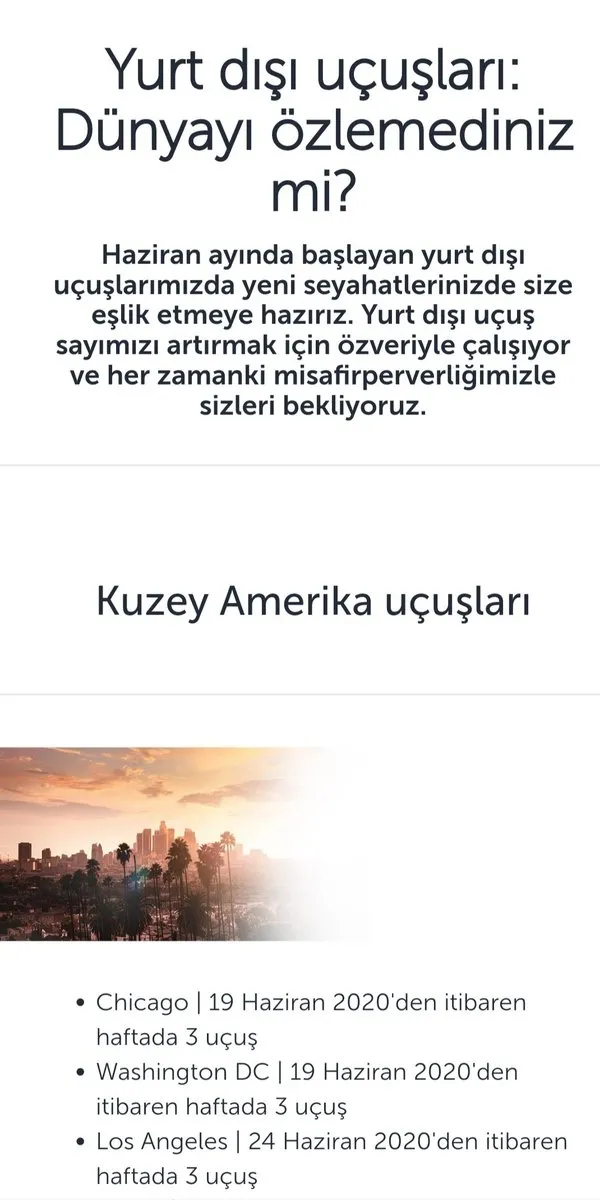 Los Angeles | 24 Haziran 2020'den itibaren haftada 3 uçuş