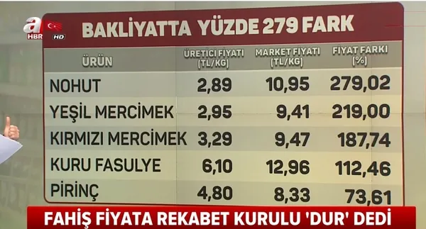 Koronavirüs salgınını fırsat bilen bazı işletmeler fahiş fiyat artışına gitti. Üreticiden 2 liraya çıkan nohut fırsatçı bir markette 10 lira gibi fahiş bir fiyat artışıyla satıldığı tespit edildi. Takvim Gazetesi Ekonomi Müdürü Faruk Erdem, bu şirketlerin Rekabet Kurulu tarafından tespit edilip deşifre edildiğini açıkladı. Erdem, bu şirketlere cezai yaptırımlarında uygulanacağını söyledi.