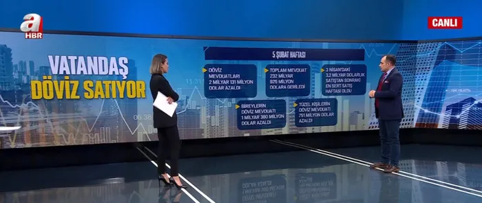 Dövize yatırım yapan kaybediyor. Döviz mevduatları 2 milyar 131 milyon dolar azaldı. Takvim Gazetesi ekonomi müdürü Faruk Erdem A Haber canlı yayınında detayları aktardı.