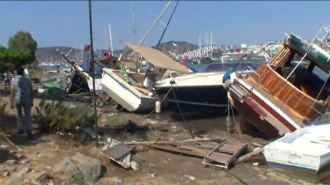 Ege Denizi'nin Gökova Körfezi'nde gece 01.31'de meydana gelen 6,3 büyüklüğündeki depremden sonra yaşanan tsunami vatandaşları tedirgin etti. 10 cm'lik tusunami sonrası bölgedeki son durumu A Haber muhabiri Gamze Elçi aktardı.