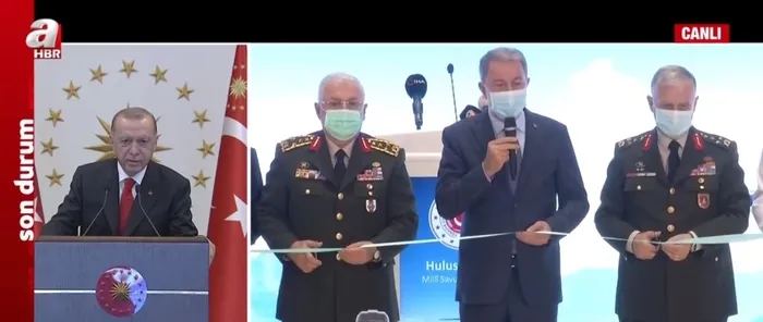 TSK'ya, milletimize ve ülkemize hayırlı, uğurlu olmasını diliyorum. Ordumuzun ihtiyaçları kapsamında bu projeyi 14 ay gibi rekor bir seviyede tamamladık. Ülkemizi savunma sanayinde dışa bağımlılıktan tamamen kurtarıncaya kadar yatırımlarımızı artırarak devam ettireceğiz. Ülkemiz talep ettiğinde kırk dereden su getirilen silahlar, DEAŞ'la mücadele kisvesi altında Suriye'deki teröristlere binlerce tır ve uçak seferiyle teslim edildi. Vatan savunmasında karşılaştığımız tüm haksızlıkları ve hukuksuzlukları kendi göbeğimizi kendimiz keserek aşmakta kararlıyız. Sözde dostlarımız bizi zaafa düşürmeye çalıştı.