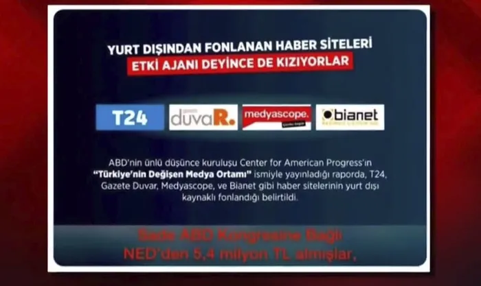 "Center for American Progress'ın" Türkiye'nin değişen medya ortamı ismiyle yayınladığı raporda T24, Duvar, Medyascope ve Bianet gibi internet sitelerinin yurt dışı kaynaklı fonlandığı belirtildi.