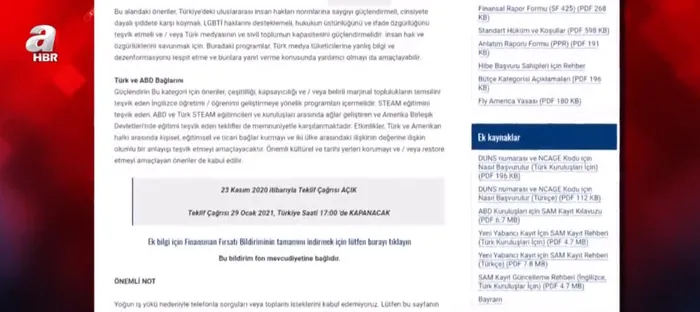 ABD'nin Ankara Büyükelçiliği 26 Kasım'da internet sitesinde yayınladığı ilanda 'demokrasiyi güçlendirme', 'Türk-Amerikan ilişkilerini geliştirme' gibi başlıklarda sivil toplum kuruluşlarına, medyaya, derneklere, vakıflara ve bireylere 5 bin ila 50 bin dolar arasında hibe programı başlattığını duyurdu.