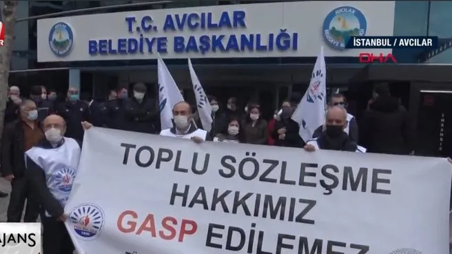 Sözleşmeli memurlar toplu iş sözleşmesi için belediye önünde eylem yaptı. Avcılar Belediyesinde çalışan sözleşmeli memurlar geçen yılın nisan ayında yürürlüğe girmesi gereken toplu iş sözleşmesinin imzalanmamasına tepki gösterdi.