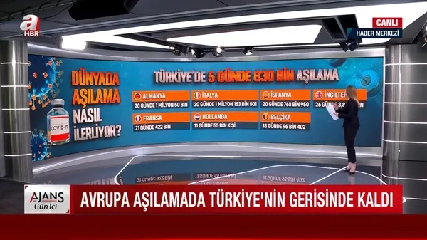 Peki hangi ülke ne kadar sürede kaç kişiye COVID-19 aşısı uygulandı. A Haber Dış Haberleri Editörü Eda Ulusoy en güncel rakamları canlı yayında açıkladı.