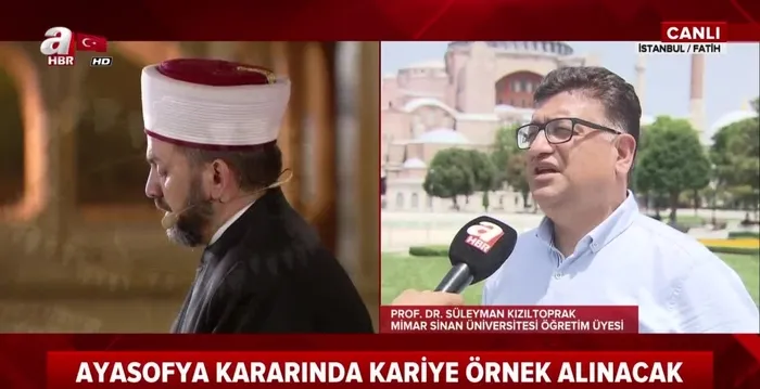 Başkan Recep Tayyip Erdoğan geçtiğimiz hafta gerçekleşen AK Parti MYK toplantısında kurmaylarına Ayasofya'nın ibadete açılması ile ilgili geniş bir araştırma yapılması talimatı verdi. Başkan Erdoğan'ın talimatı ile Ayasofya süreci Türkiye'nin en sıcak gündem maddelerinden biri oldu. Sürekli Vakıflar Tarihi Eserlere ve Çevreye Hizmet Derneği, Ayasofya'nın camiye tekrar döndürülmesi için Danıştay'a başvurdu ve sürecin hukuki boyutu başladı. Başkan Erdoğan dün akşam katıldığı yayında, "Danıştay kararını versin, gereken adımlar atılır" diyerek kararlılığı ortaya koydu. Ayasofya'nın ibadete açılması ile ilgili Kariye modelinin emsal olabileceği de tartışılıyor. Peki, Kariye Camii Ayasofya için emsal gösterilebilir mi? A Haber canlı yayınına katılan Mimar Sinan Üniversitesi Öğretim Üyesi Prof.Dr. Süleyman Kızıltoprak Danıştay'ın kararına dikkat çekti.