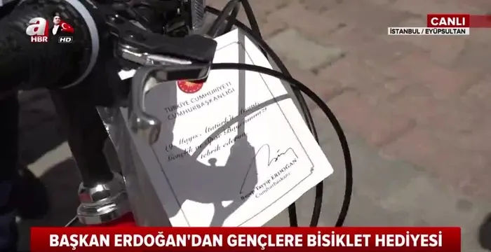 Son dakika haberi; Başkan Recep Tayyip Erdoğan'dan gençlere sürpriz hediye... 19 Mayıs Atatürk'ü Anma Gençlik ve Spor Bayramı'nda Başkan Erdoğan, gençlere bisiklet hediye etti. A Haber gençlerin mutluluğuna canlı yayında ortak oldu.