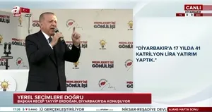 Başkan Recep Tayyip Erdoğan, Diyarbakır mitinginde konuştu. Başkan Erdoğan, ''Bunların eline para geldiği zaman Kandil'e gönderirler. Biz ise milletin bu parasını Diyarbakır'a emniyete, adalete, yola, ulaşıma, tarıma... Diyarbakır'a 17 yılda 41 katrilyon lira yatırım yaptık. Diyarbakır'da iki şehir hastanesi birden yapıyoruz.'' dedi.