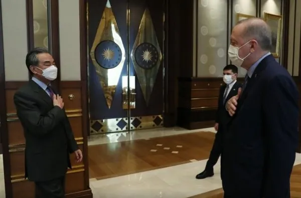 İki ülke arasındaki ilişkilerin ele alındığı görüşmesi sonrası Vang Yi, Cumhurbaşkanı Recep Tayyip Erdoğan tarafından Cumhurbaşkanlığı Külliyesi'nde kabul edildi.