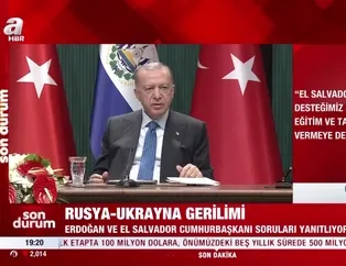 Başkan Erdoğan, Cumhurbaşkanlığı Külliyesi'nde El Salvador Cumhurbaşkanı Nayib Bukele ile ortak basın toplantısında açıklamalarda bulundu. Başkan Erdoğan El Salvador'a büyükelçilik açılması konusunda talimat verdiğini açıklarken Rusya ve Ukrayna arasındaki gerilime ilişkin "Doğru bulmuyorum" ifadelerini kullandı.