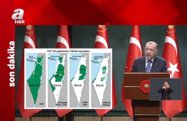 Son dakika haberi | Kabine Toplantısı sonrası Millete Sesleniş konuşması yapan Başkan Erdoğan, işgalci İsrail'in Filistin toprakları Gazze'de yaptığı katliamlara sert tepki gösterdi.