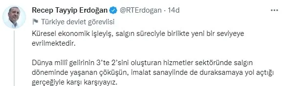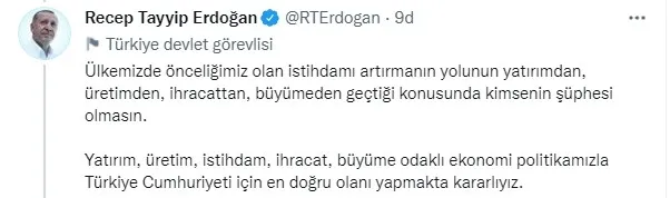 SON DAKİKA: Başkan Erdoğan Twitter'dan ekonomi gündemine dair flaş açıklamalarada bulundu.