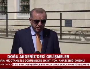 Erdoğan, "Başta Şansölye Merkel dönem başkanı olarak, gerek komisyon başkanı olarak Charles Michel, nitekim dün kendisiyle görüşmemiz olmuştu. İspanya Başbakanı Sayın Sanchez, gerek İtalya Başbakanı Conte, hepsiyle görüşmeler yaptık, yapıyoruz. Bu görüşmelerde tabii deniz yetki alanlarından öte başka bir yaklaşım var. O da nedir? 'Yunanistan Başbakanı Miçotakis ile bir görüşme süreci olabilir mi?' Biz de kendilerine diyoruz ki; bizim Miçotakis ile görüşme yapma noktasında bir sıkıntımız yok. Ne görüşeceğiz, hangi çerçevede görüşeceğiz aslolan budur. Eğer Miçotakis Meis'te yaptıklarını eğer bir dayatma olarak yapmaya kalkarlarsa bunun bir anlamı yok." diye konuştu.