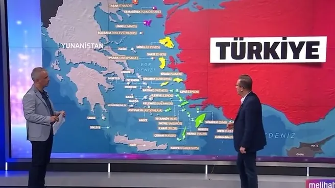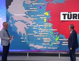 Sarı, turuncu ve yeşillerle olan adalar Yunanistan tarafından silahlandırıldı. Bunların güçleri ise; bir takviyeli bölükten, tugaya kadar değişmektedir. Ege'de silahlandırılan ada sayısı tahmini 20'dir. Bunlar Türkiye'nin dibindeki adalardır. Türkiye'ye bir kuşatma operasyonunu tarihsel ve operasyonel anlamda uygulandığını görmekteyiz. Bu Yunan aklının ürünü değildir. Yunanistan tamamen ABD'nin kontrolünde olan bir devlet. Çözmek mümkün değildir.