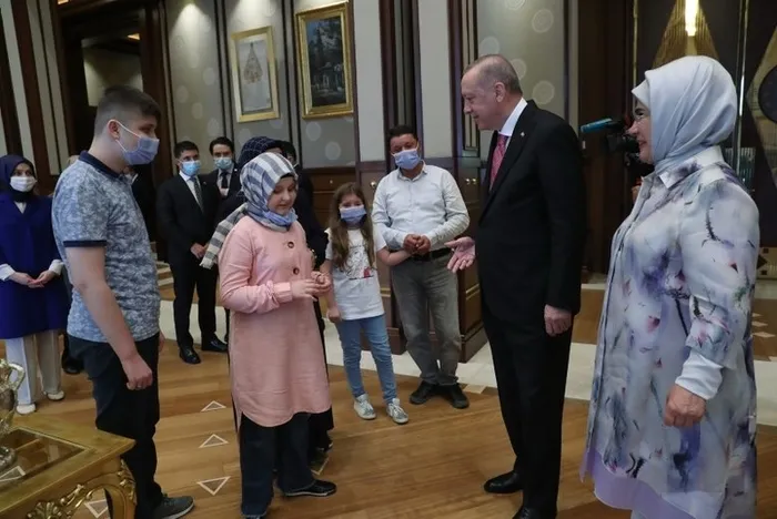 Başkan Recep Tayyip Erdoğan ve eşi Emine Erdoğan, görme engelli imam hatip ortaokulu 6'ncı sınıf öğrencisi Ravzanur Koçaker ve ailesiyle bir araya geldi.
