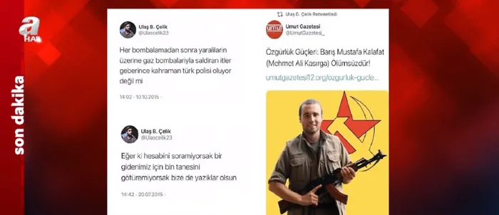 DHKP-C ve MLKP gibi yasa dışı terör örgütlerinin sözde marşlarını okuyup polise saldıranlar arasında olan Çelik'in sosyal medya üzerinden yapılan paylaşımları her şeyi gözler önüne seriyor.