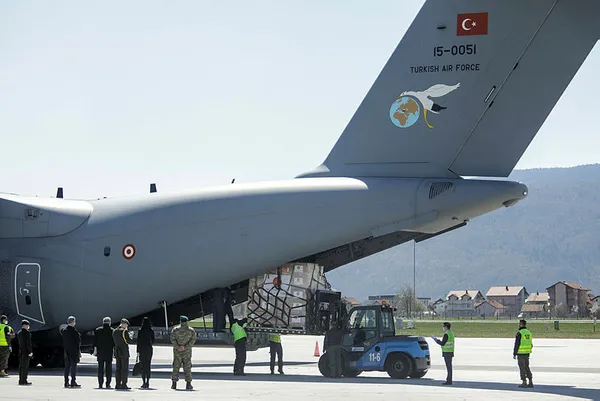Yeni tip koronavirüs (Kovid-19) salgınına karşı mücadeleye destek amacıyla Türkiye'nin Balkan ülkelerine gönderdiği tıbbi yardımları taşıyan askeri kargo uçağı, Sırbistan'ın ardından ikinci durağı Bosna Hersek'e geçtiğimiz çarşamba günü ulaştı.