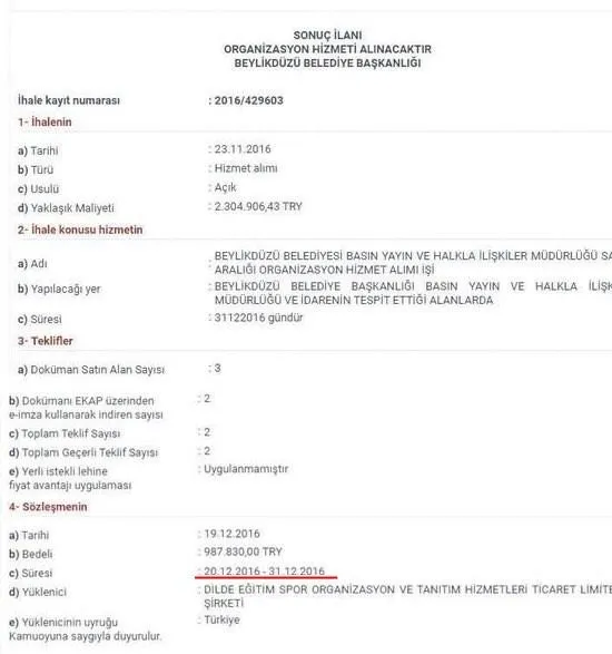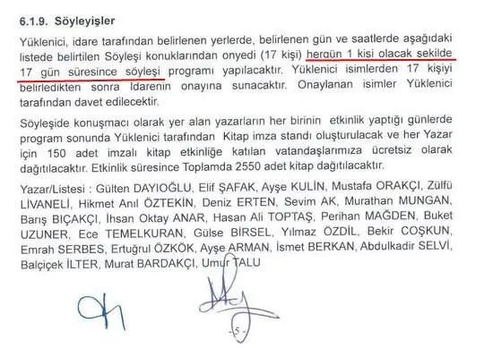 Beylikdüzü Belediyesi'ne bağlı Basın Yayın ve Halkla İlişkiler Müdürlüğü'nün gerçekleştirdiği ihale teknik şartnamesinin 5.sayfasında, "Her gün bir kişi olacak şekilde 17 gün süresince söyleşi programı yapılacaktır" deniliyor. Ancak ihale sonucunda etkinliklerin 20 Aralık-31 Aralık 2016 arasını kapsadığı açıkça görülüyor. 12 gün sürecek etkinlik için 17 günlük program şartının koşulması; ihalenin ve şartnamenin gelişigüzel hazırladığını ortaya koyuyor.