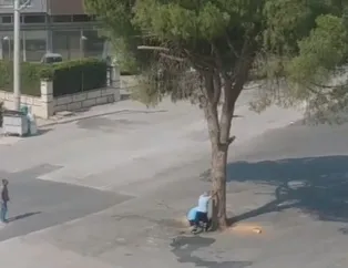 İzmir Büyükşehir Belediyesi'ne bağlı ekipler Karşıyaka'da Şemikler Mahallesi 6276 Sokak üzerinde yol çalışması sırasında ortada kalan yaklaşık yarım asırlık çam ağacını kesti.