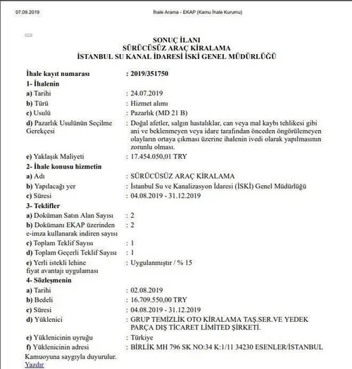 İSKİ için alınan ve 4 Ağustos'ta faaliyete geçecek olan bu 997 araç için sadece 4 aylığına 16 milyon 709 bin 550 lira ödendiği görüldü.