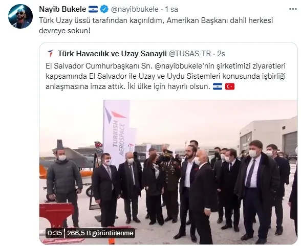 Öte yandan esprili paylaşımlarıyla dikkat çeken El Salvador Cumhurbaşkanı Bukele'de Kotil'in yaptığı paylaşımı retweet ederek, şunları kaydetti: