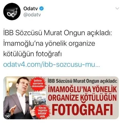 Oda TV; 29 Mart-30 Mart 2020 tarihinde yayınladığı haberlerde; "Kim bu 'organize kötülük' ekibi. İmamoğlu'na yönelik organize kötülüğün fotoğrafı..", "Murat Ongun'un "organize kötülük" diyerek paylaştığı isimler arasından Mücahit Birinci yer aldı" ve "İmamoğlu o fotoğraf için şöyle dedi: İzlerken kanım dondu" başlıklı haber yayınladı.