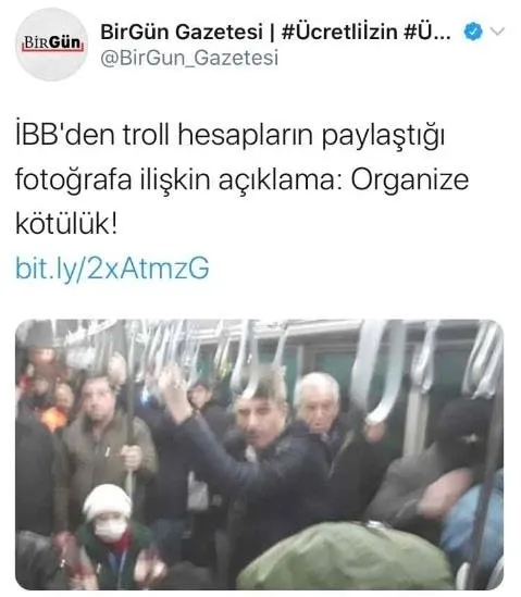 BirGün Gazetesi'nin 29 Mart 2020 tarihinde saat:22.51'de sosyal paylaşım sitesi Twitter'dan yaptığı paylaşımda; "İBB'den troll hesapların paylaştığı fotoğrafa ilişkin açıklama: Organize kötülük!" ifadeleri kullanıldı.