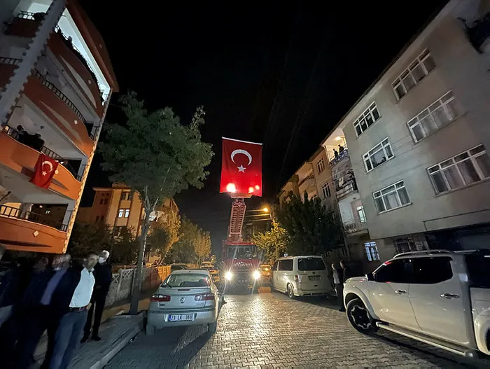 ŞEHİT POLİS ŞAHİN'İN BABA EVİ TÜRK BAYRAKLARIYLA DONATILDI