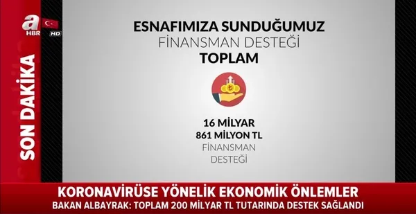 Vergi ötelemeleri, ticari hayatın aksamaması için devreye alınan tedbirler, kısa çalışma ödeneği, asgari ücret desteği ile bireysel, esnaf ve işletmelere yönelik destek paketlerinin; üretim gücüne, esnafa ve istihdama koruma kalkanı sağladığını söyleyen Albayrak, "Bu kapsamda bugüne kadar attığımız adımların toplam tutarı 200 milyar TL'ye ulaştı" dedi.