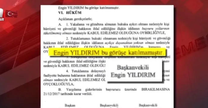Anayasa Mahkemesi üyesi Engin Yıldırım’ın “Işıklar yanıyor” paylaşımıyla darbe imasında bulunmasına tepkiler çığ gibi geldi. Skandal paylaşımın sahibi Yıldırım’ın 2018 yılında Anayasa Mahkemesi Başkanvekiliyken HDP Eş Genelbaşkanı Selahattin Demirtaş’ın tutukluluğunun devamına karşı çıktığı ortaya çıktı.