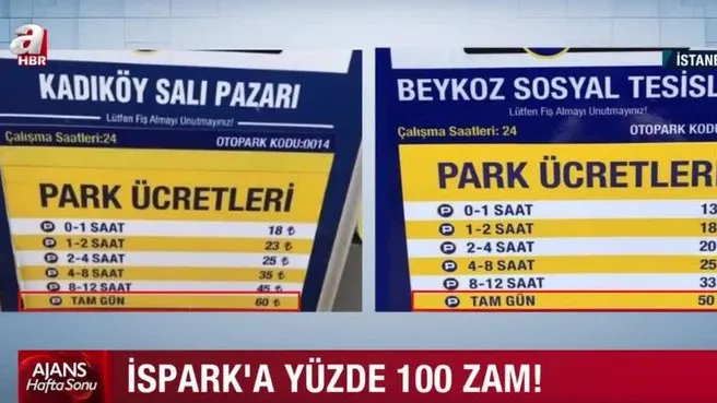 İSPARK tarafından işletilen otopark ücretlerine İBB Meclisi'nde yüzde 25 zam teklifi kabul edilmişti. Ancak, gün içindeki ücret tarifelerine bakıldığında gelen zammın yüzde 25 değil, yüzde 100 olduğu anlaşıldı. A HABER UYGULAMASINI İNDİRMEK İÇİN TIKLAYIN