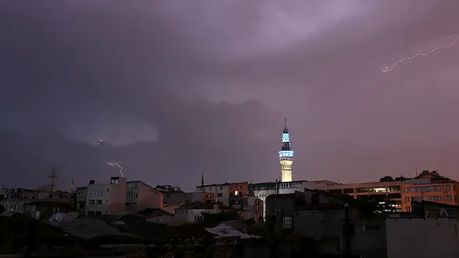 İstanbul'da sabahın ilk saatlerinde şiddetli sağanak yağış etkili olurken gökyüzü birbiri ardına çakan şimşeklerle aydınlandı. Şimşek fırtınası İstanbul semalarında güzel manzaralar oluşturdu.