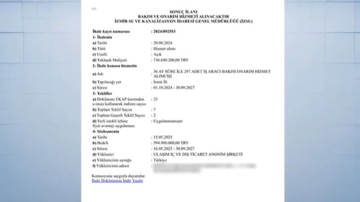 İzmir Büyükşehir Belediyesi’nin 594 milyon liralık dev ihaleyi, İstanbul’da konkordato ilan eden bir firmaya verdiği ortaya çıktı. Üstelik söz konusu ihalede usulsüzlük yapıldığı da tespit edildi.