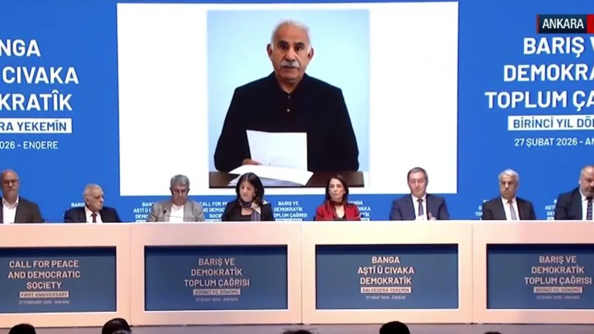 Milli Dayanışma, Kardeşlik ve Demokrasi Komisyonu’nun raporu doğrultusunda atılacak yasal adımlar beklenirken, PKK elebaşı Öcalan’ın sürecin ikinci aşamasına yönelik mesajları DEM Parti’nin düzenlediği toplantıda paylaşıldı. İmralı mesajında "Kürtsüz Türk, Türksüz Kürt olmaz. Bu ilişki diyalektiğinin tarihsel bir özgünlüğü vardır. Cumhuriyetin kuruluş sürecindeki temel metinler, Türk ve Kürt birliğini ifade ediyordu." dedi.
